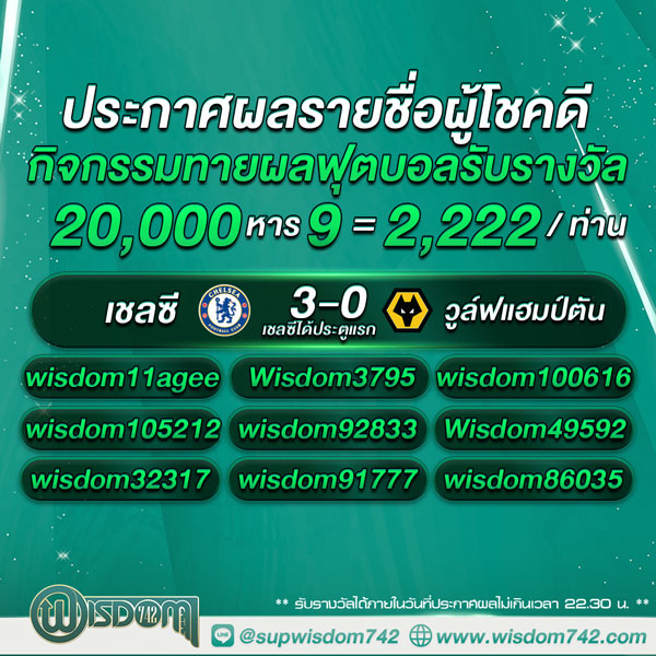 ( *หากพบทุจริตทางทีมงาน Wisdom742 จะถือว่าสละสิทธิ์ค่ะ* )